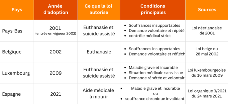 Plusieurs pays européens ont déjà adopté une législation encadrant l’euthanasie ou le suicide assisté.